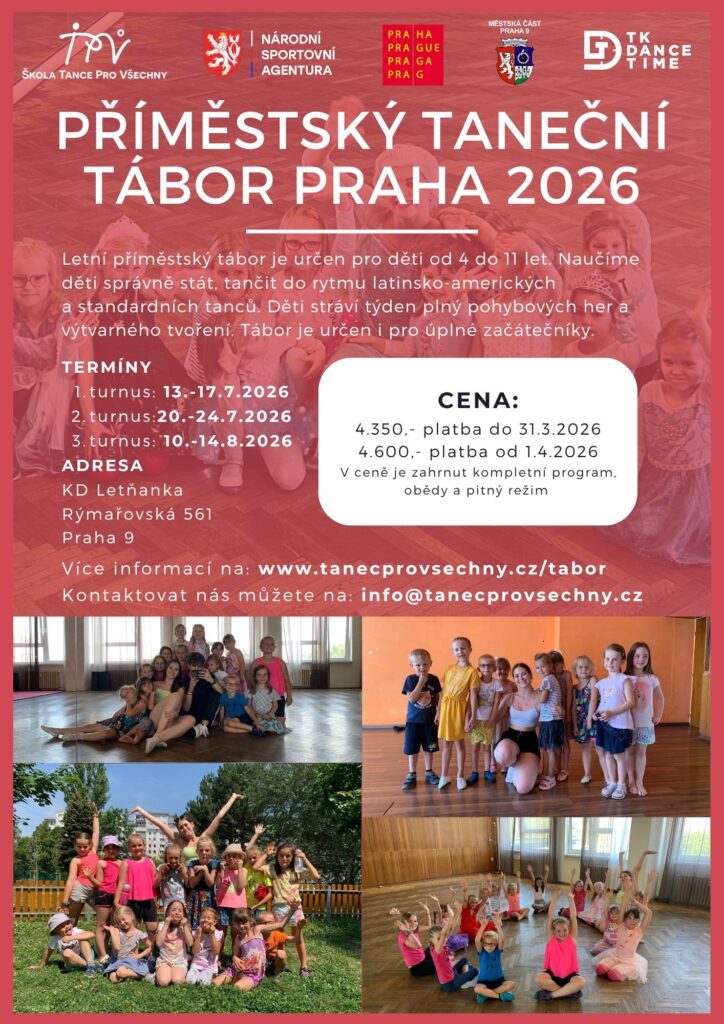 Letní příměstský tábor organizuje Škola tance pro všechny a je určen pro děti od 4 do 11 let, které mohou být úplnými tanečními začátečníky. Program zaštiťují proškolení lektoři naší taneční školy.